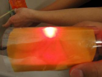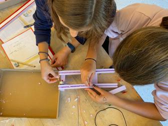 Als wir mit dem Wasserkraftwerk fertig waren, haben wir einen Lampenschirm darüber geklebt. Als wir das Wasser angelassen hatten, wurde das Papier nass, darum haben wir eine Folie darüber gemacht.