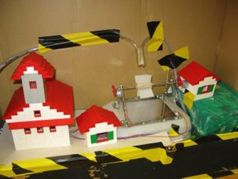 Wir wollten zuerst eine Tiefgarage bauen, bei der ein Playmobile-Auto rausfahren sollte. Doch da lief einiges schief …! Da haben wir beschlossen, dass wir aus einer Tiefgarage eine normale Garage mit Strasse bauen und das kaputte Wasserkraftwerk gegen ein funktionierendes einzutauschen. Als dann alles gut ging, haben wir ein leichtes Auto gebaut. Zum Schluss noch eine Strassenlaterne und alles ist prima!