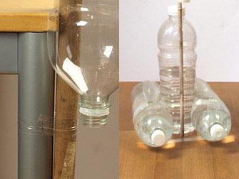 Mit Wasser gefüllte Pet-Flaschen werden mit Klebeband aneinder geklebt und dienen als Sockel.