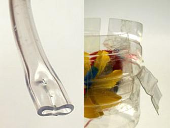 • Mit einer Heftklammer ("Bostitch") kannst du den Schlauch in zwei dünne Düsen aufteilen und mit einer Zange die Klammern fest zusammenpressen.