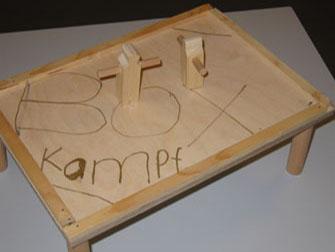 Im Handgriff unter der Holzplatte ist ein Magnet eingebaut. So können die Boxer im Kampf geführt werden.