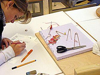 Wir haben aus Schuhschachteln Tischfussballspiele hergestellt.