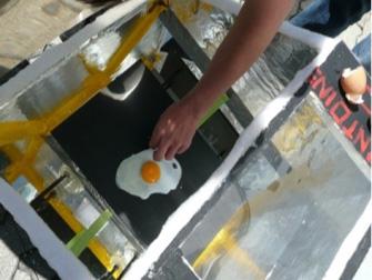 Egalement au Cycle d'orientation de Savièse, Johann, Antoine et Simon ont construit un Capteur avec une plaque de fer peinte en noir et une loupe.La température a passé de 20° à 125° en 3h30.Résultat : L’œuf placé avant midi est dur et l’œuf au plat placé l'après midi a cuit instantanément !