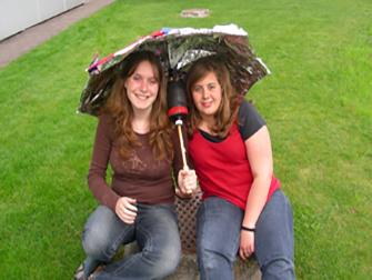 Die beiden Mädchen aus der Orientierungsschulklasse von Karin Matter-Locher haben diesen genialen Regenschirm entwickelt: Wenn die Sonne scheint,