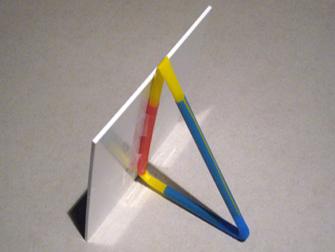 Daniel hat eine Vorrichtung entwickelt, wie die Spiegel mit einfachsten Mitteln der Sonne nachgeführt werden können. Die Trinkhalme sind so ineinandergesteckt, dass man die Winkel verstellen kann.