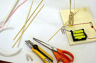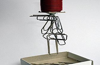 Costruisci una gru. Appendi un elettromagnete al braccio della gru, in modo da poter catturare oggetti ferrosi a distanza e trasportarli dove vuoi.