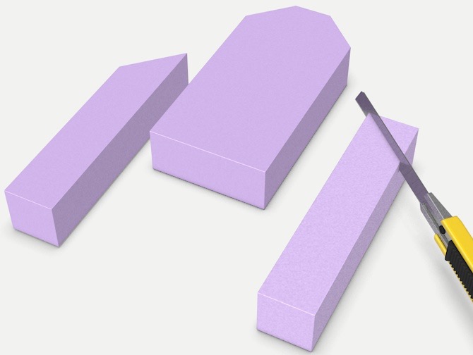 • Taglia via dalla barra di schiuma rigida un pezzo da 2 cm: in questo modo otterrai un cubo.