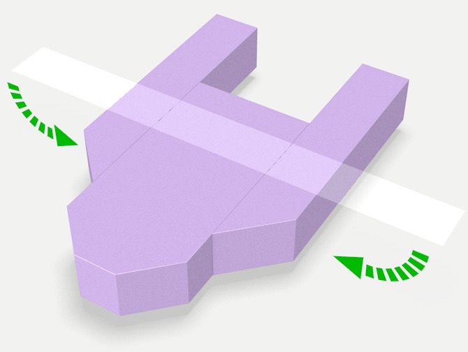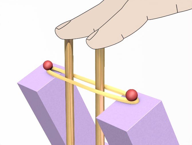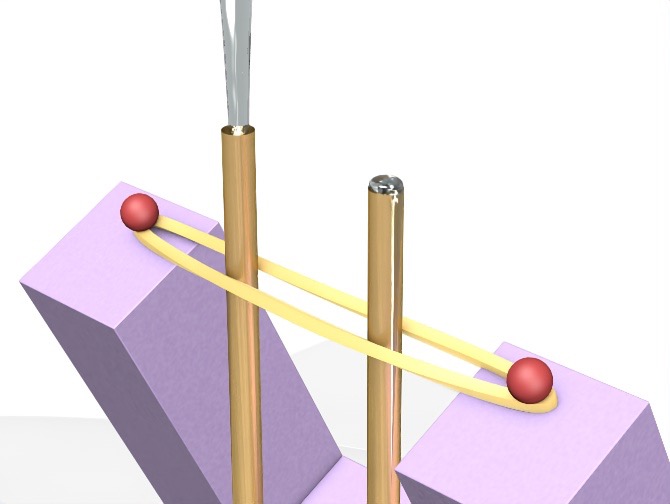 • Spanne ein kurzes, braunes Gummiband über die hinteren roten Stecknadeln.