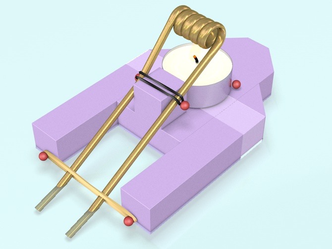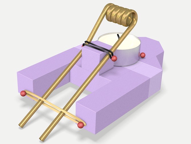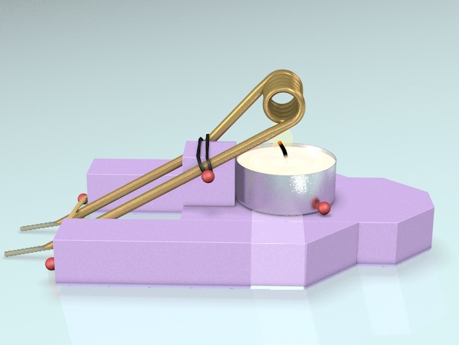 • Déplace le tube en laiton jusqu'à ce que les spirales se trouvent exactement au-dessus de la mèche de la bougie.
