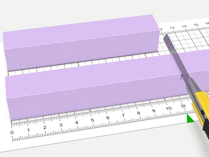• Taglia via dalla barra di schiuma rigida due pezzi della lunghezza di 11 cm.