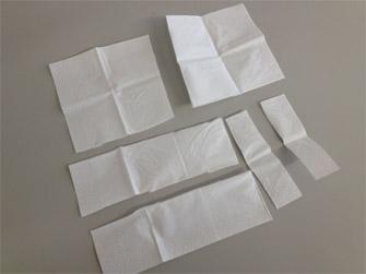 • Schneide das Taschentuch den Falzlinien entlang in zwei Quadrate und vier Rechtecke.