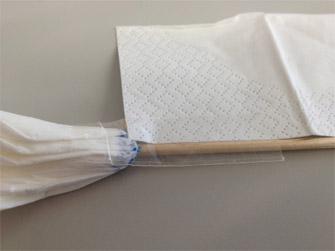 • Umwickle den Holzstab mit dem Papier und fixiere es mit einem Klebstreifen.