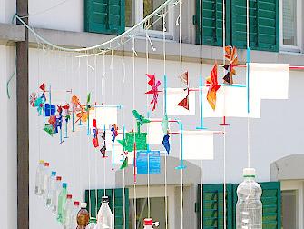 Dein Windrad kannst du nun mit wasserfesten Filzstiften bemalen und draussen aufhängen. Achte dabei auf: