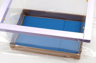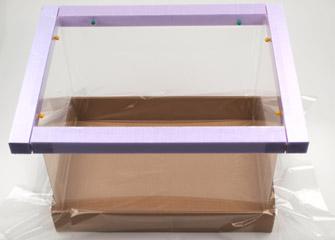 Lege eine Plastikfolie über den Boden der Schachtel.