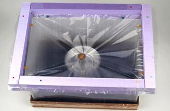 Die zweite Plastikfolie wird gleichmässig über den Rahmen der Kammer ausgelegt.