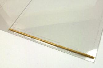 Lege die 4 Plastikscheiben aneinander und verbinde sie entlang der ganzen Länge der Nahtstelle mit Klebeband.