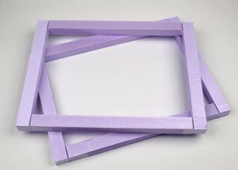 Lege je zwei längere und zwei kürzere Hartschaumstäbe flach (nicht hochkant) zu zwei Rahmen aus.