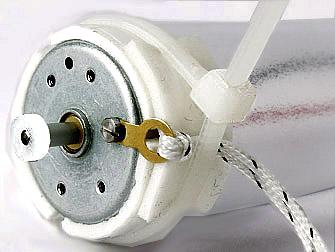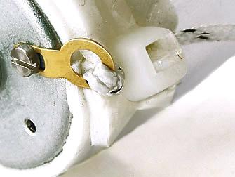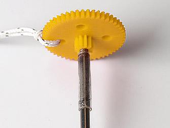 Befestige die Schlaufe an einem Loch des Zahnrades, gleich wie bei der Öse des Motors.