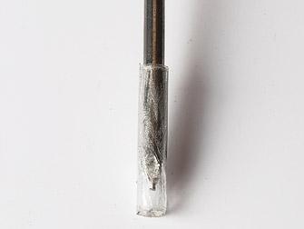 Wickle 5 cm Klebeband um das Ende des Nagels, damit du dich an der scharfen Spitze nicht verletzen kannst.