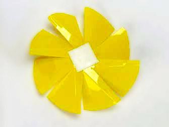 Lege das Plastikwindrad auf den Tisch, mit der matten Seite nach oben.
